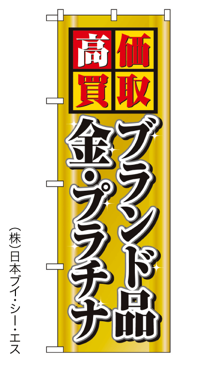 のぼり旗「高価買取ブランド品金プラチナ」 [01014777]<送料無料・税込>●60cm×180cm●材質:ポンジクロス■全品送料無料(送料込み)です。*弊社規定配送方法に限ります。*通常クロネコメール便か定形外郵便発送です。*枚数により変わります。*配達時間帯指定、その他輸送指定は送料有料になります。■種類が多いので在庫にご注意下さい。ごくまれですが欠品あります。*お急ぎの際には事前に在庫確認をオススメします。■5枚以上(または6000円以上)のご注文は代金引換配達手数料サービスです。 *4枚以下(または6000円未満)の代金引換配達手数料は500円です。 ■ポール(竿・白色樹脂皮膜3m
